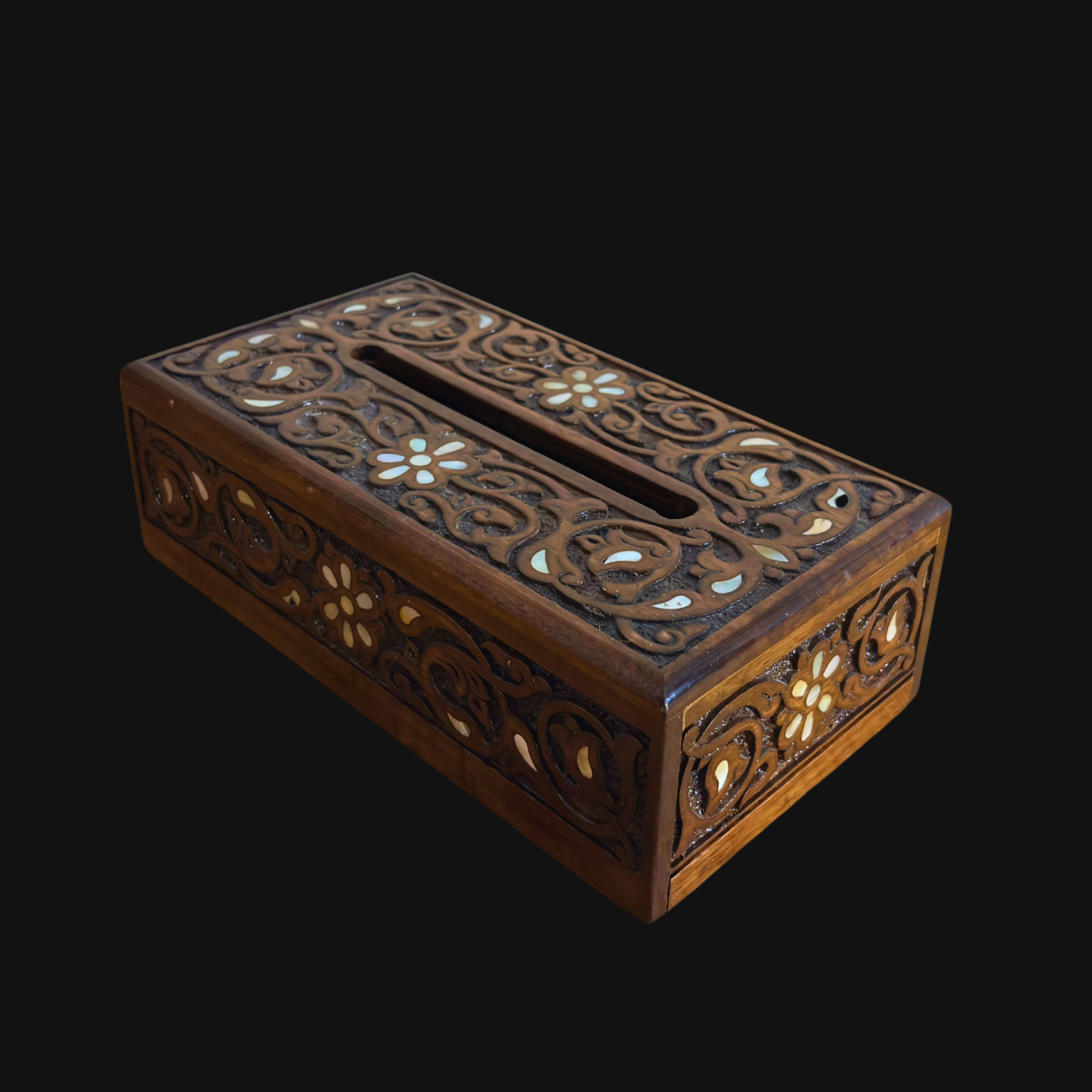 portafazzoletti intagliato a mano, madreperla, arte damascina, accessorio artigianale, decorazione orientale, Damascus Box