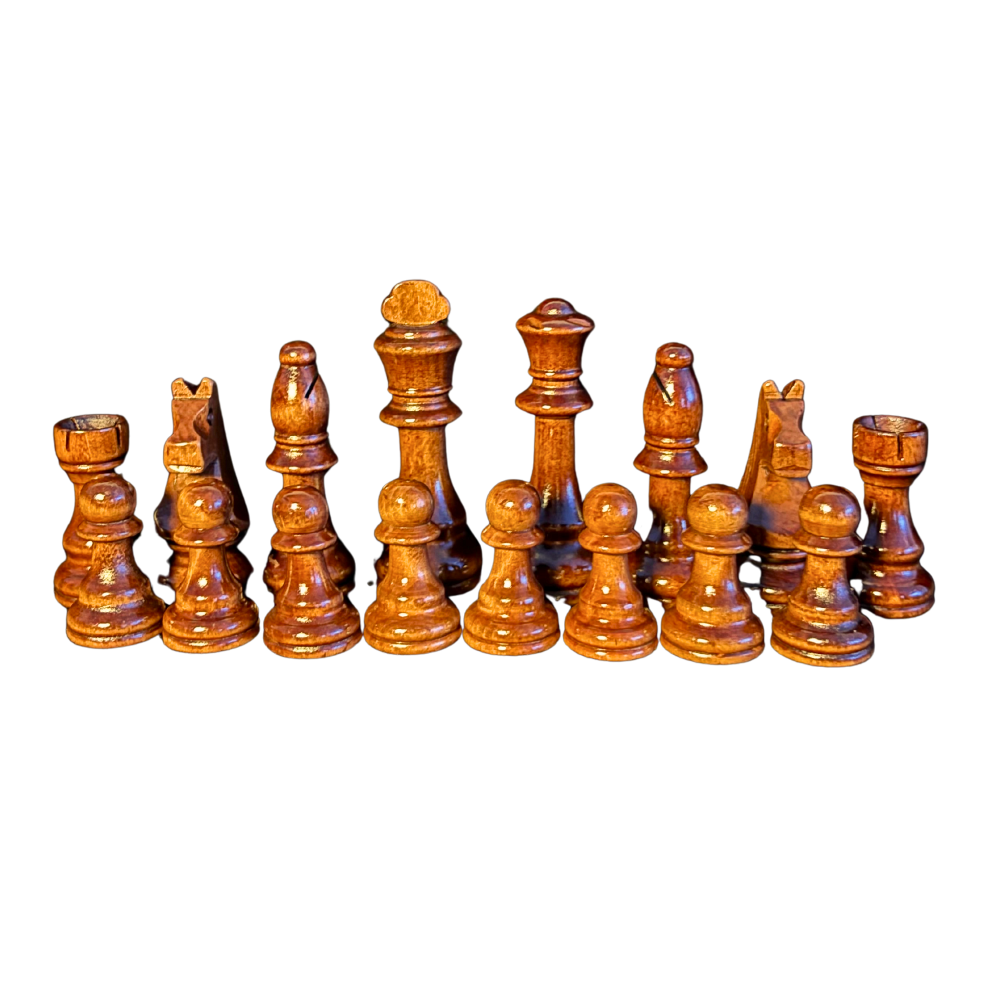 Zestaw zawiera komplet drewnianych pionków do szachów i backgammona oraz kostki — idealnie dopasowane do stołu.